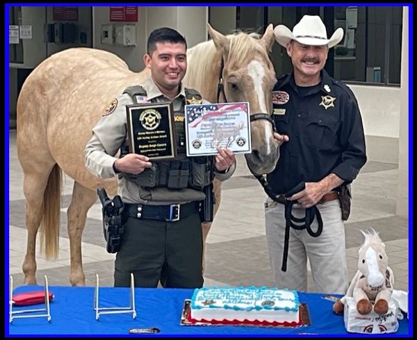 Deputy Gomez, you are a true hero. The bravery and courage and presence of mind in a life and death situation exemplifies what it means to be the best of the best. Your actions saved a life that day and as a community we are proud and we are grateful. Congratulations on being our Sonny Horses 4 Heroes September award recipient in the category of Life Saving Actions.