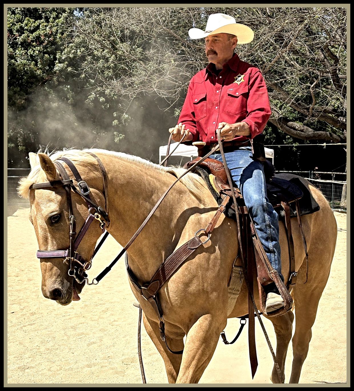 In the Spring of 2020, Russell suffered a medical emergency while riding in the Sycamore Canyon area in the Backcountry of the Santa Monica Mountains with his faithful companion and friend Sonny. He was able to get one call out before the signal was gone. That call was to Russell's wife Laura. The last thing he said before the call cut out was "I Love You". Helicopter search and Rescue units were dispatched. Nearly 3 hours passed before they were able to see Sonny through the dense green tree cover. Sonny faithfully stood over Russell for about 3 hours on a 95 degree day, shading him thus keeping him 20 degrees cooler staying off death from heat exposure, while giving search and rescue teams time to find Russell and save his life. Not only did Sonny keep Russell alive, but Sonny wouldn't leave his side as most horses instinctively would go eat grass or head back to the ranch or trailer.